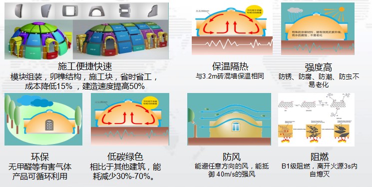 采用改性石墨烯EPS模塊材料建造,該材料具有施工便捷快速、強度高、保溫、隔熱、綠色、節(jié)能、環(huán)保、低碳、防風、耐火、阻燃等優(yōu)點。