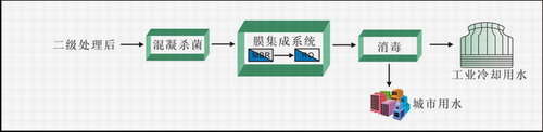 由污水收集、調(diào)節(jié)、預(yù)處理單元、生物處理單元、深度處理單元、再生水儲(chǔ)存、再生水輸配等部分組成。在深度處理單元如過濾,臭氧強(qiáng)氧化和活性炭吸附以及膜集成系統(tǒng)分離。