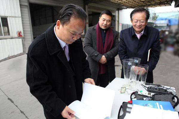 劉主席在現(xiàn)場(chǎng)觀看了兩臺(tái)設(shè)備運(yùn)行情況的演示,聽取了電化水工程研究室負(fù)責(zé)人梁勤朗與飛創(chuàng)科技總經(jīng)理歐群飛博士對(duì)新設(shè)備的性能和工藝流程的介紹,同時(shí)吳所長(zhǎng)對(duì)2014年電化水項(xiàng)目的應(yīng)用發(fā)展規(guī)劃,并召開技術(shù)匯報(bào)研討會(huì)。
