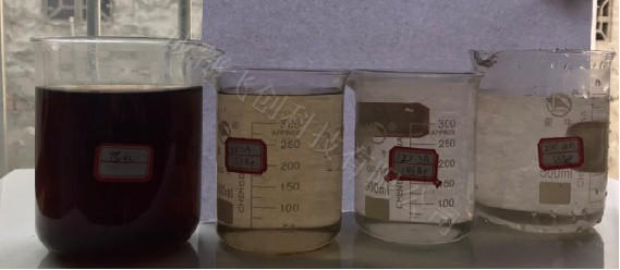 試驗后的水顏色較原水有明顯的改變,水透明,稍偏黃。