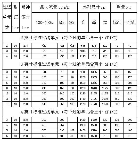 可根據(jù)用水要求選擇不同精度的過濾精度,有 20 微米、40 微米、55 微米、75 微米、100 微米、200 微米、400 微米等多種規(guī)格,過濾比大于 85%。由于反洗時將過濾疊片處于松開狀態(tài),加上離心噴射作用,可達到其它過濾器無法達到的清洗效果。每個過濾單元反洗時間只需 10 到 20 秒即可完成。根據(jù)時間和壓差信號自動控制反洗過程。過濾器各個過濾單元按順序進行反洗。工作、反洗狀態(tài)自動切換,可確保連續(xù)工作不斷水,系統(tǒng)壓損小,過濾和反洗效果不會因工作時間長而變差。疊片過濾器模塊化設計,可按安裝空間自由組合,因地制宜,減少建筑投資。系統(tǒng)材料選擇廣,其中全塑系統(tǒng)擁有優(yōu)秀的抗化學腐蝕性,耐酸,耐堿,耐鹽,耐溶劑。幾乎不需日常維護,檢查亦不需專用工具,可拆卸零部件很少。