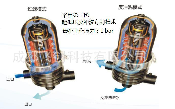最小反沖壓力* 1.0bar (采用第三代超低壓反沖洗專利技術(shù))
