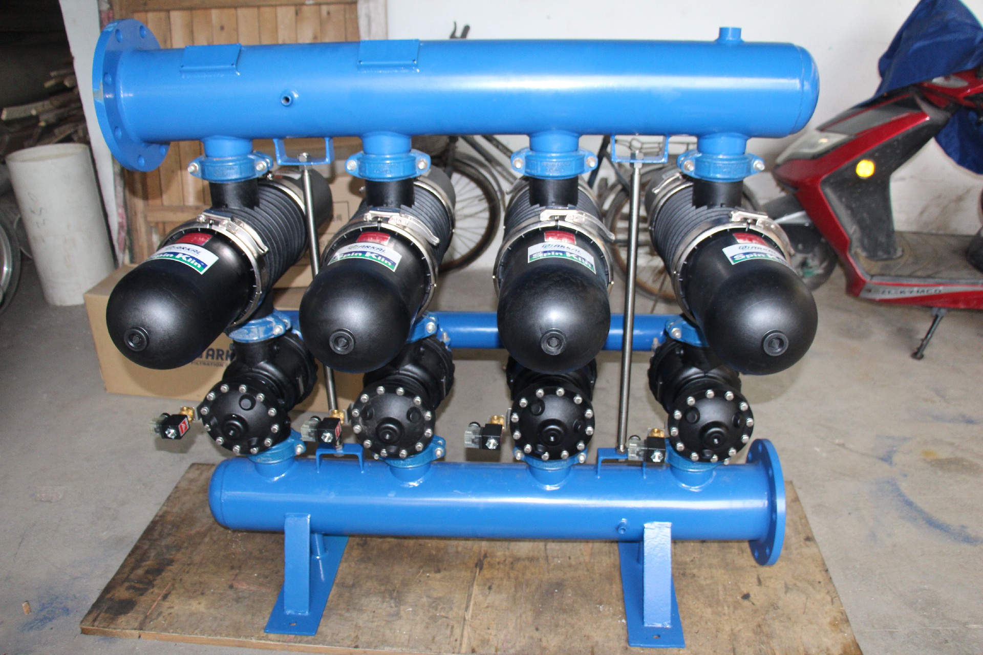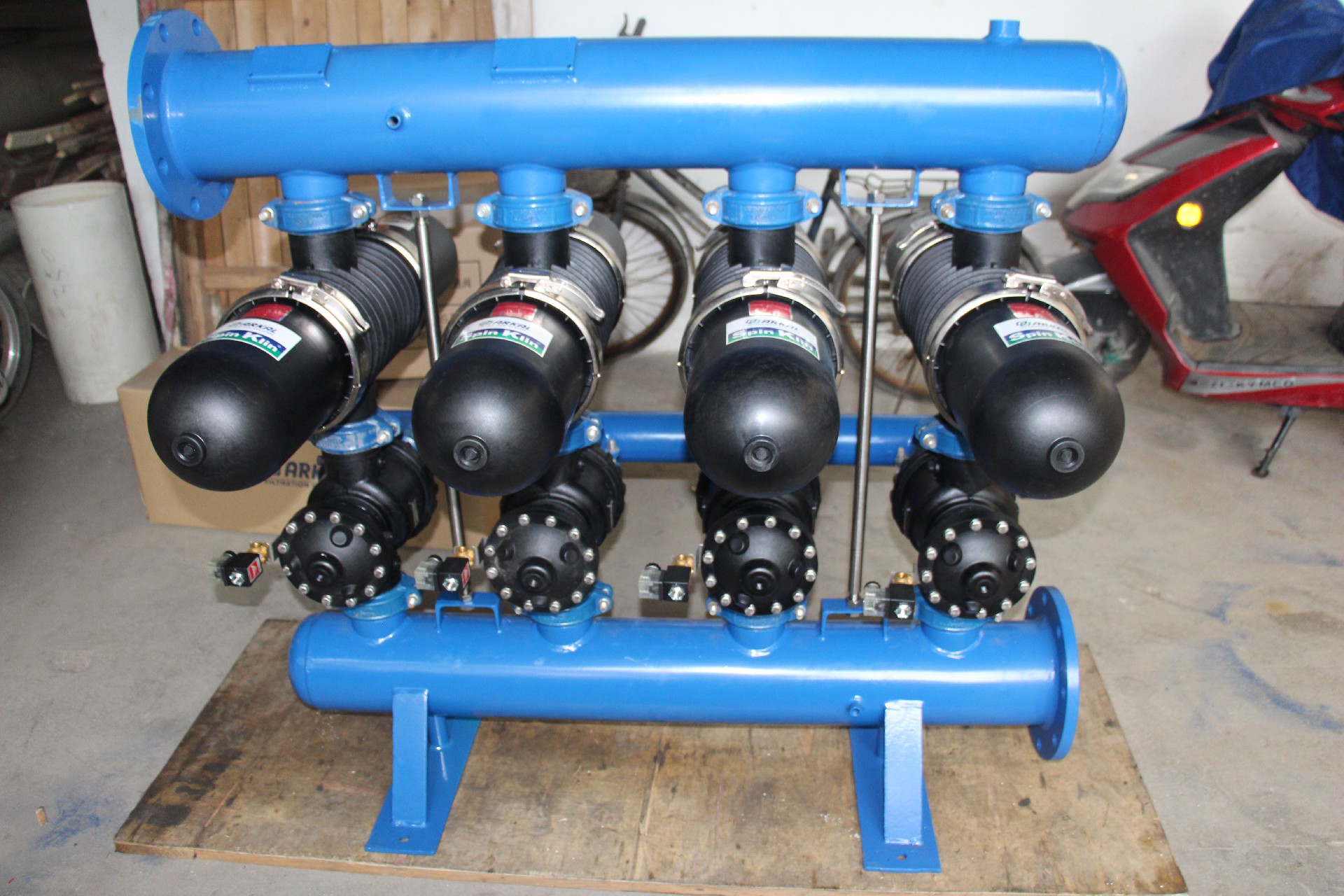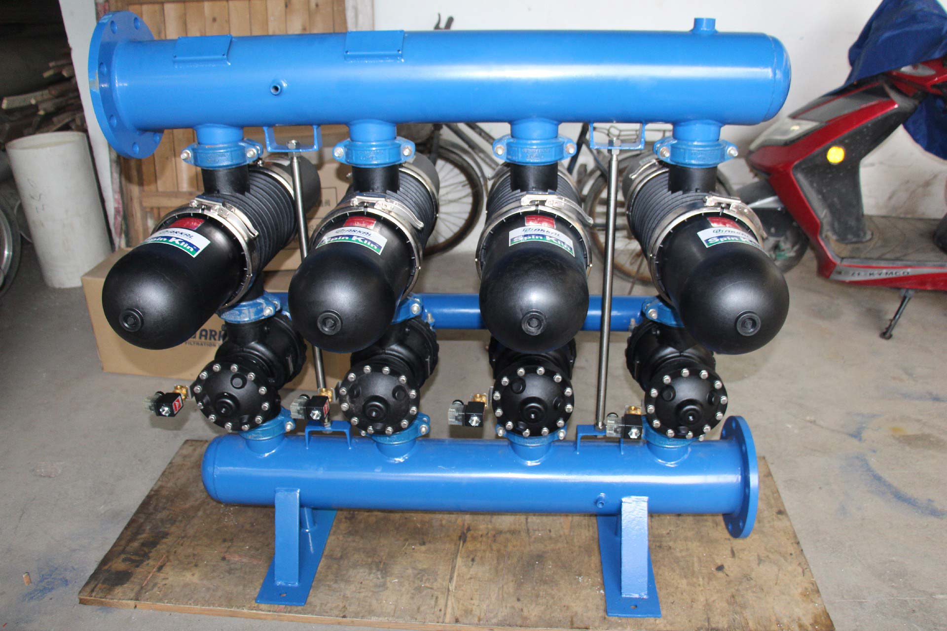 3. 外源反沖,使用泵驅(qū)動(dòng)反沖液反沖洗(可以是過濾液,可以是其他來源清潔液體),泵的壓力大于3.5bar,流量為每10T/H/SPINE